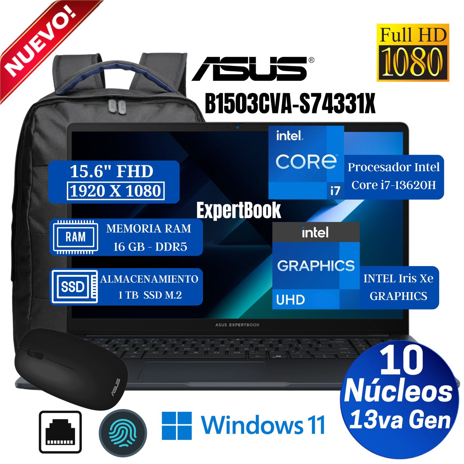 Sé el primero en valorar “Laptop ASUS B1503CVA-S74331X, 15.6″ FHD TN, Intel Core i7-13620H, Ram 16GB, Ssd 1 TB, Win 11 Pro (90NX0801-M04T00)”
