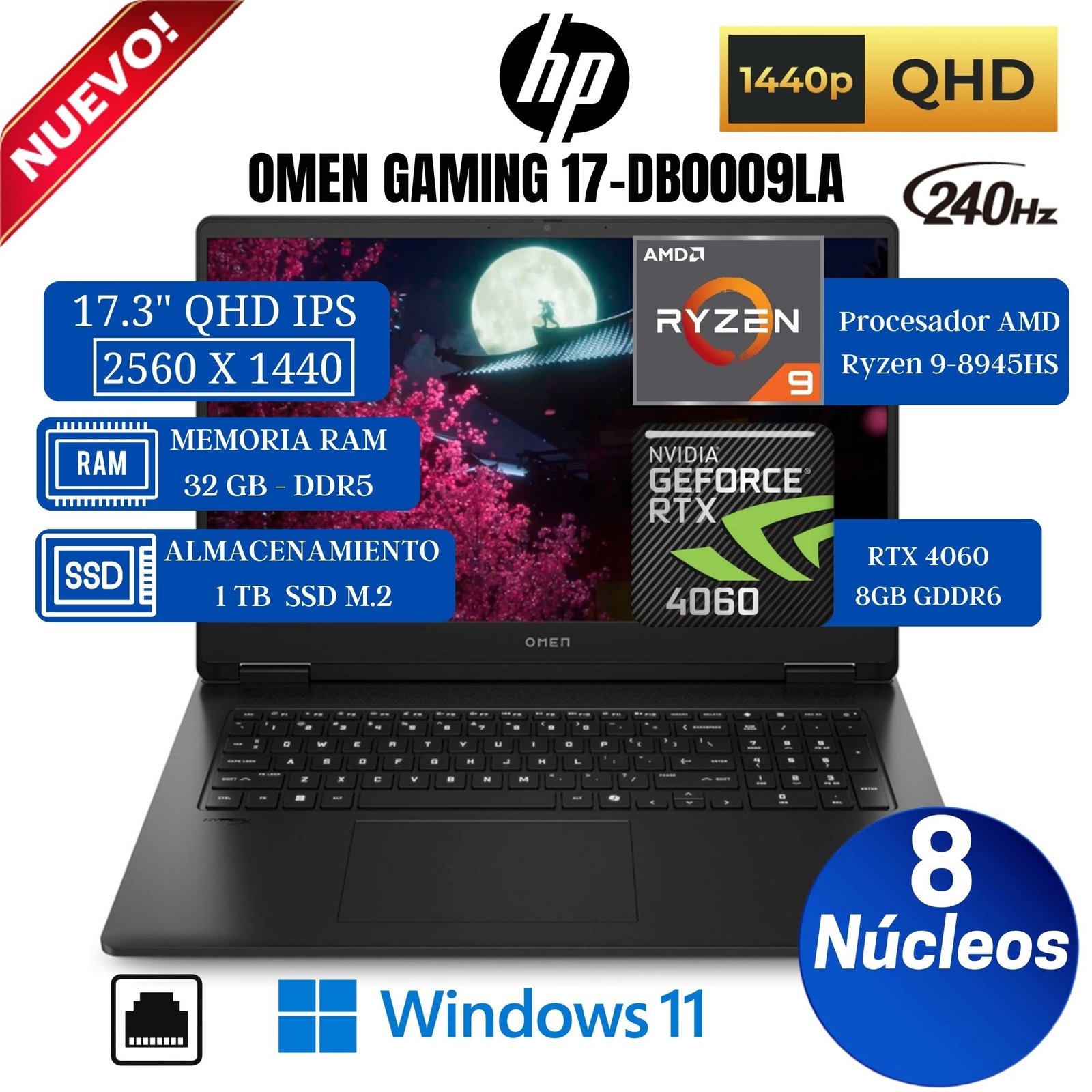 Laptop Hp Omen 17-db0009la 17.3” QHD IPS, Ryzen 9-8945HS, Ram 32GB, Ssd 1 TB, RTX 4060, Win 11 – A14RDLA#ABM